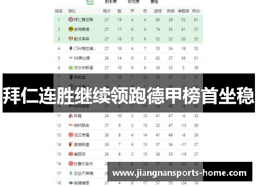 拜仁连胜继续领跑德甲榜首坐稳